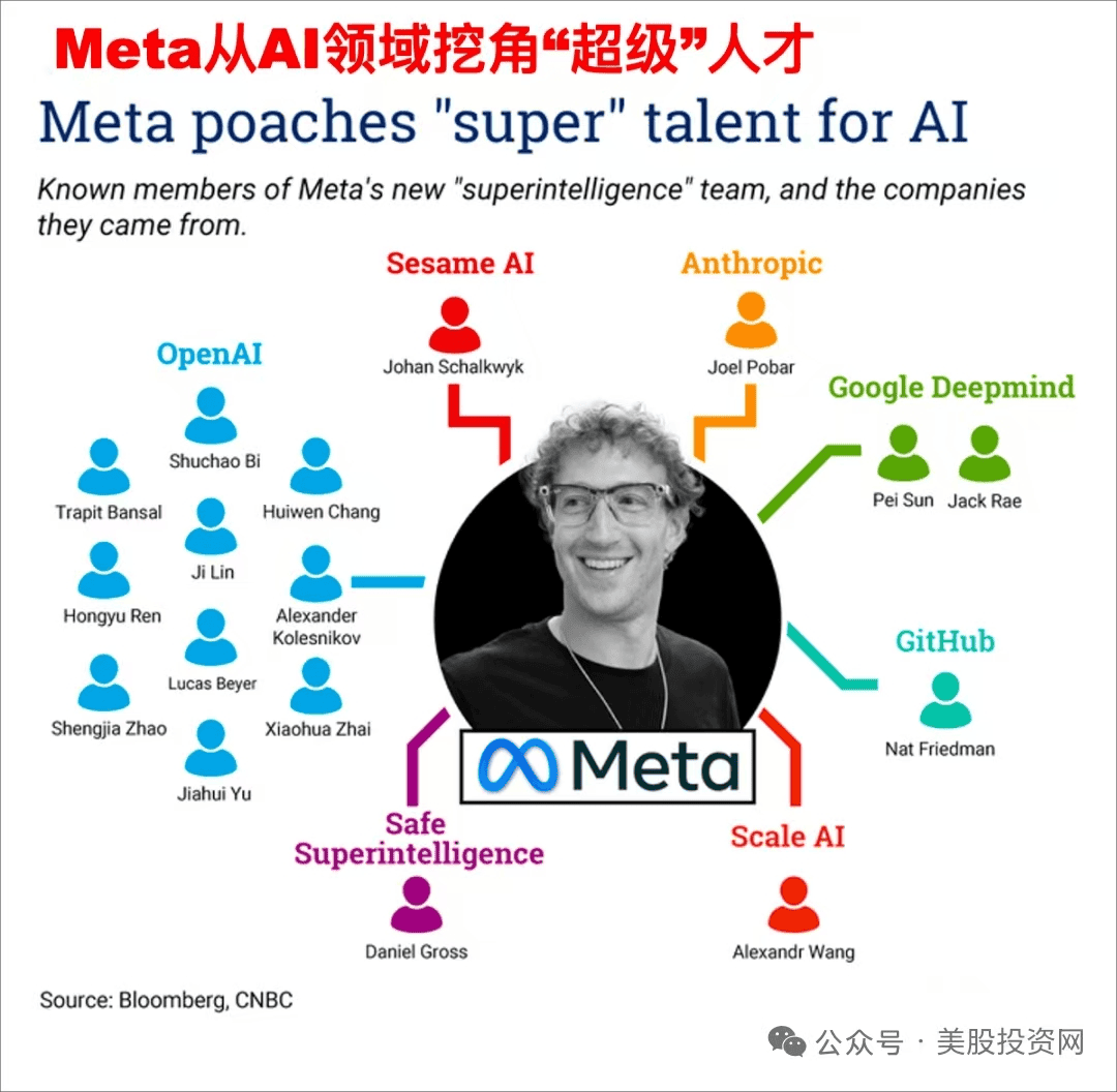 据我们美股投资网了解,OpenAI的下一代模型o5可能因此而推迟发布。彭博社也预测,2026年Meta在生成式AI的市场份额有望超过30%,而OpenAI因核心人才流失,可能陷入防守。